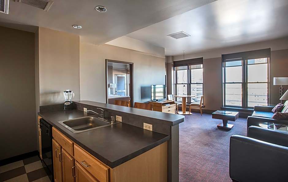 O preço começa em $102. Endereço: 1401 Commerce Street. As comodidades em destaque incluem Wi-Fi (gratuito), centro de fitness (gratuito), ar-condicionado, recepção 24 horas, cozinha, quartos para não fumantes, elevador, amenidades de higiene gratuitas; além de Aceita animais de estimação (taxas extras), Estacionamento privativo (taxas extras) e Salas de reuniões/banquetes (taxas extras).